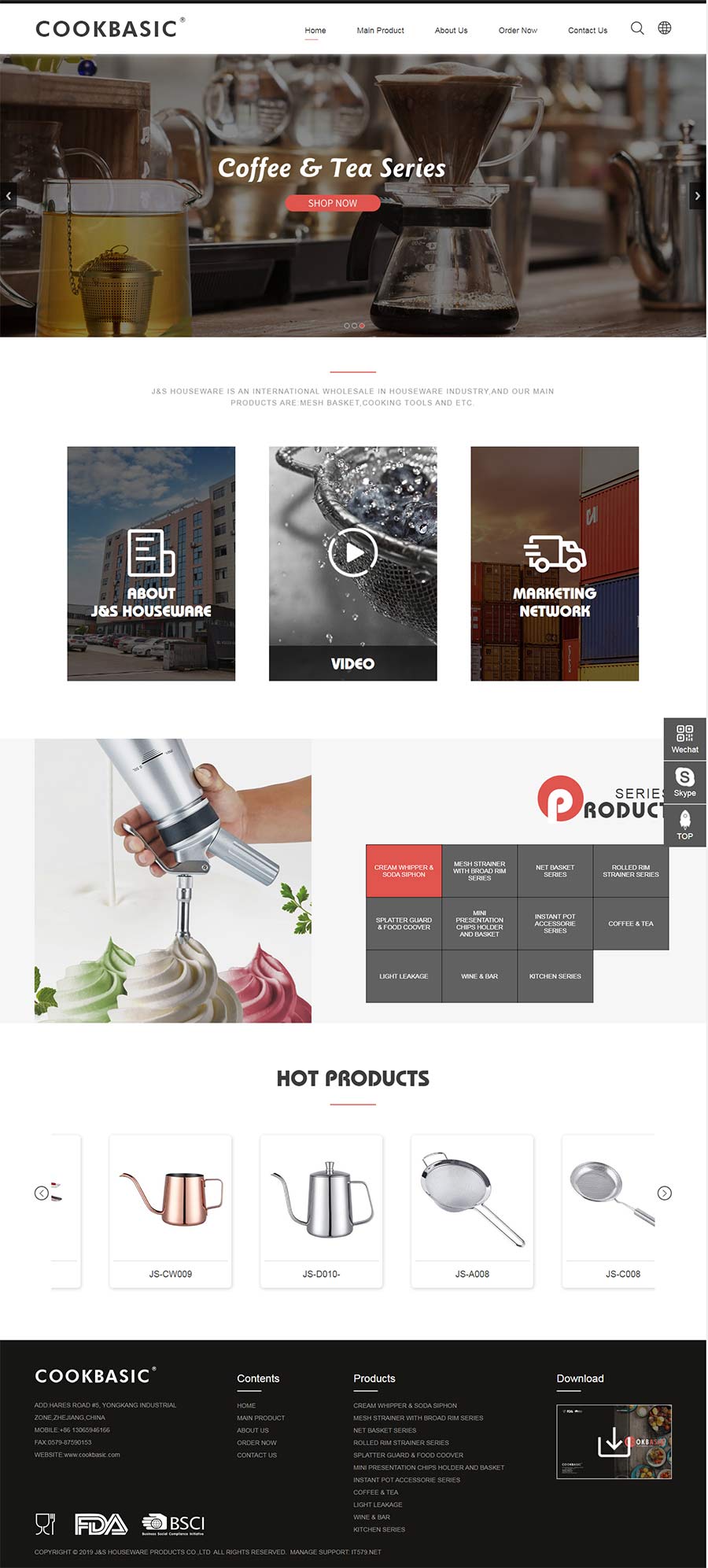 Established in 2012 by James Lu ,J&S House ware (China Yong J&S House ware products co.,Ltd), as a trading at the beginning , mainly for SS mesh items like strainer and wire basket  and bakeware item and cream whipper.