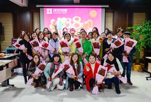 晚上6點30分,在一陣歡快的音樂中晚會正式拉開了序幕。一進入會議室,滿地的彩色氣球和講臺上滿滿的康乃馨花束分外引人注目,讓大家都有些好奇和興奮。按序入座沒一會,地方生活董事長陳總走上講臺發(fā)言:“首先我們請公司所有女同事走到臺前來,在三八婦女節(jié)這個特殊的節(jié)日里,我們先向女同事們獻上鮮花和巧克力。”女同事們上臺后,陳總又抽點了幾名男同事上臺來獻花。