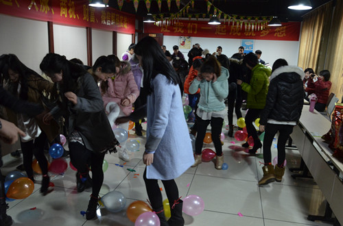 陳總介紹,本次三八婦女節(jié)活動由兩個環(huán)節(jié)組成。第一環(huán)節(jié)是踩氣球,即所有參賽女員工兩兩結(jié)成一對,并各自挑選兩組氣球綁在腳上,待音樂聲起,盡力去踩破他組的氣球,與此同時要保護自己的氣球不被踩爆。4個氣球都被踩爆的人員則淘汰。最后剩下10位人員的時候,比賽進入第二環(huán)節(jié)。第二環(huán)節(jié)名稱為“你來比劃我來猜”。前一環(huán)節(jié)剩下的10位人員重新兩兩組合,共5組。每一組都會拿到3道題,第一題可以使用語言或者肢體動作進行描述,但是不能說出題目里的任一字眼,第二題和第三題只允許肢體語言進行演繹,出聲描述即被淘汰。在規(guī)定時間內(nèi),猜出數(shù)量多的隊取勝。獲勝的隊伍可是能拿到超級大禮——精美的黑陶瓷!